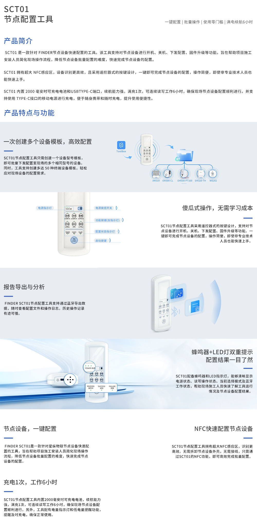 SCT01节点配置工具只需创建一个设备型号模板, 即可批量下发配置至现场的多个相同型号的设备。
